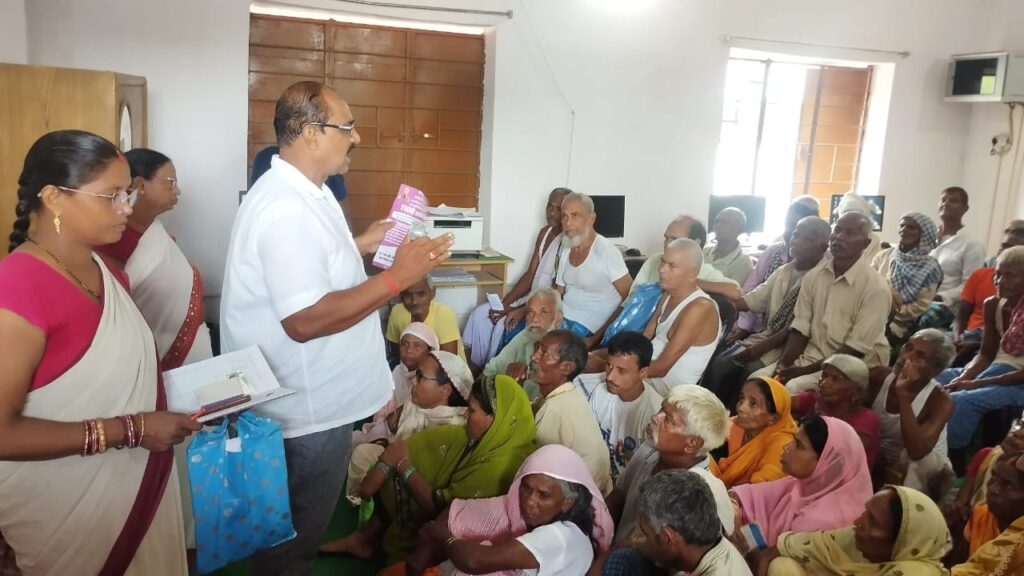 किया गया। कार्यक्रम में पोषक क्षेत्र के दर्जनों की संख्या में पेंशन भोगी उपस्थित रहे,साथ ही साथ स्मार्ट क्लास के स्क्रीन पर माननीय मुख्यमंत्री नीतीश कुमार द्वारा प्रसारित स॑वाद को उपस्थित पेंशन भोगियों ने शांति पूर्ण तरीके भाषण को सुना,और माननीय मुख्यमंत्री जी के प्रति आभार व्यक्त किया।