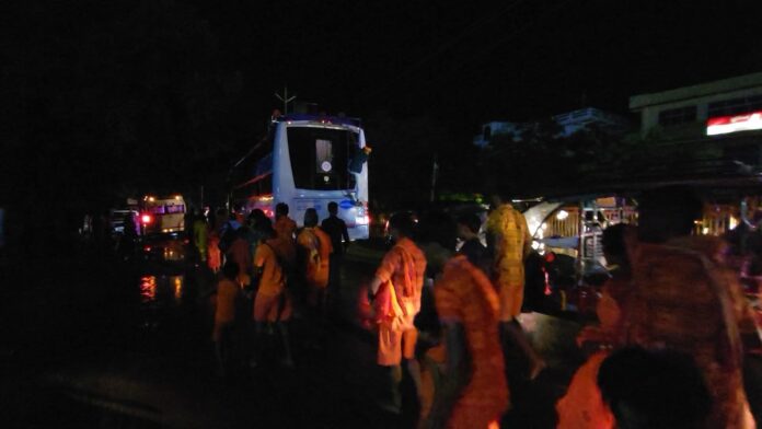 प्रत्यक्षदर्शियों के अनुसार, बस गोविंद ट्रेवल्स की थी और सुल्तानगंज की ओर कांवरियों को लेकर जा रही थी। बस की छत पर भारी मात्रा में ओवरलोड सामान रखा गया था। छत का सामान बिजली के तार से टकरा गया, जिससे खंभा उखड़ गया और एक खड़ी कार पर जा गिरा।
