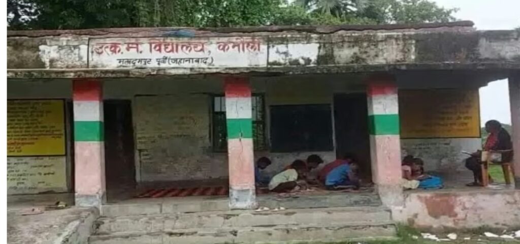 जहानाबाद जिले के मखदुमपुर प्रखंड स्थित कनौली गांव के उत्क्रमित मध्य विद्यालय का भवन पूरी तरह से खंडहर हो चुका है. यहां स्कूल की छत से प्लास्टर गिरना आम बात हो गई है. बावजूद इसके स्कूल का संचालन उसी खतरनाक भवन के बरामदे में किया जा रहा है. बारिश के दिनों में छत से पानी टपकता है. स्कूल के छत और प्लास्टर टूट-टूट कर गिरते रहते हैं, जिससे कभी भी बड़ा हादसा होने की आशंका बनी रहती है.