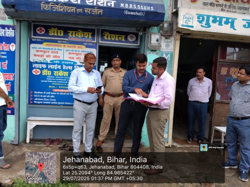 निरीक्षण दल का नेतृत्व असैनिक शल्य चिकित्सक सह मुख्य चिकित्सा पदाधिकारी, जहानाबाद द्वारा किया गया। इस टीम में जिला कार्यक्रम प्रबंधक, स्वास्थ्य विभाग; जिला परियोजना पदाधिकारी, जिला गंगा समिति (नमामि गंगे); नगर स्वच्छता प्रबंधक, नगर परिषद; राजस्व पदाधिकारी, जहानाबाद; एवं नगर थाना प्रभारी सहित अन्य अधिकारियों की सहभागिता रही।