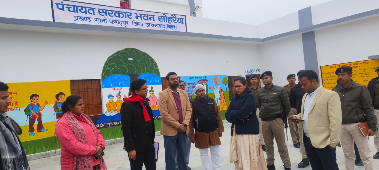 जहानाबाद की जिला पदाधिकारी अलंकृता पाण्डेय ने रतनी फरीदपुर प्रखंड अंतर्गत सोहरैया पंचायत में निर्माणाधीन पंचायत सरकार भवन का निरीक्षण किया। निरीक्षण के दौरान उन्होंने भवन में सभी मूलभूत सुविधाएं सुनिश्चित करने का निर्देश संबंधित अधिकारियों को दिया।जिला पदाधिकारी ने विशेष रूप से भवन में छात्रों के लिए ई-लाइब्रेरी की व्यवस्था करने पर जोर दिया।